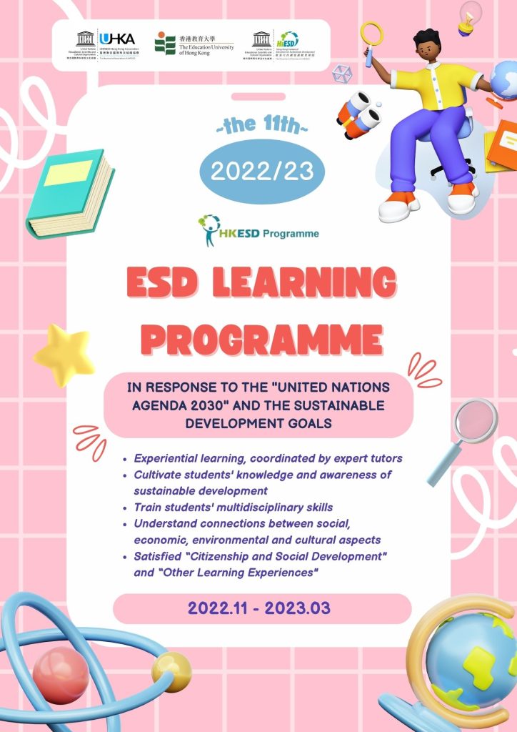 The “ESD Learning Programme” is a is a five-month action-oriented, research-based and practical learning programme for primary and secondary students. The Programme aims to cultivate students’ multidisciplinary skills in response to UNESCO’s guidelines and promote students’ whole-person development.