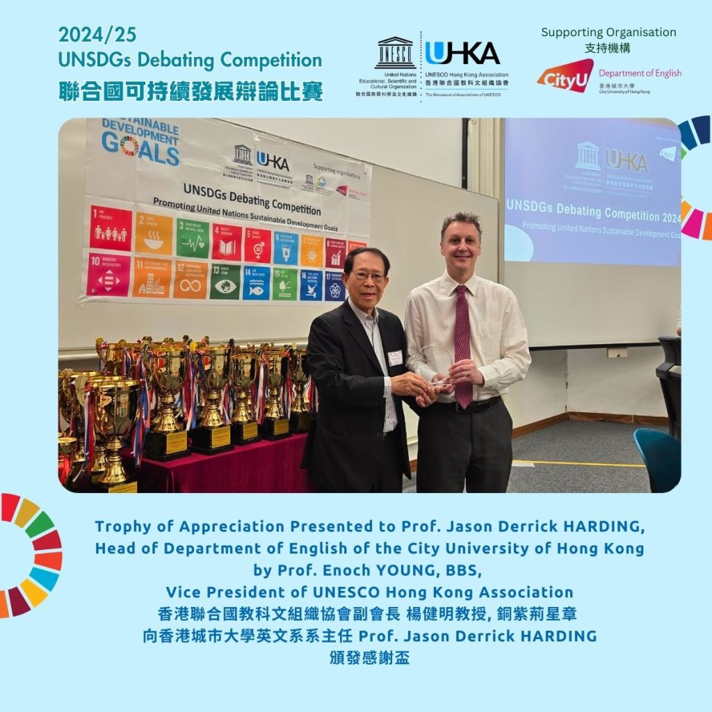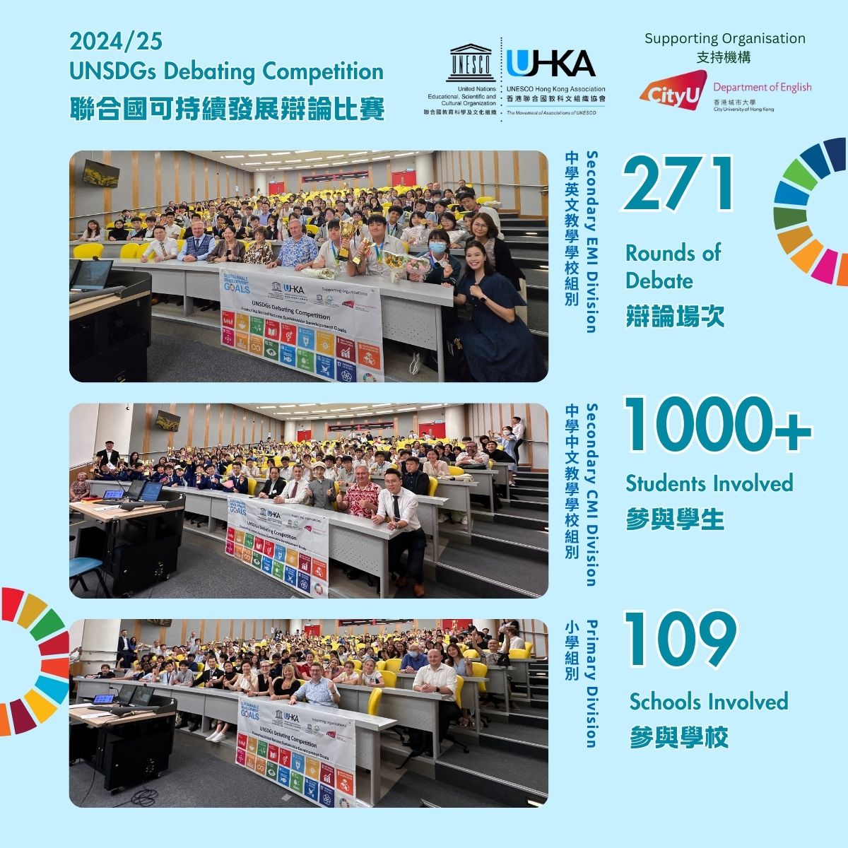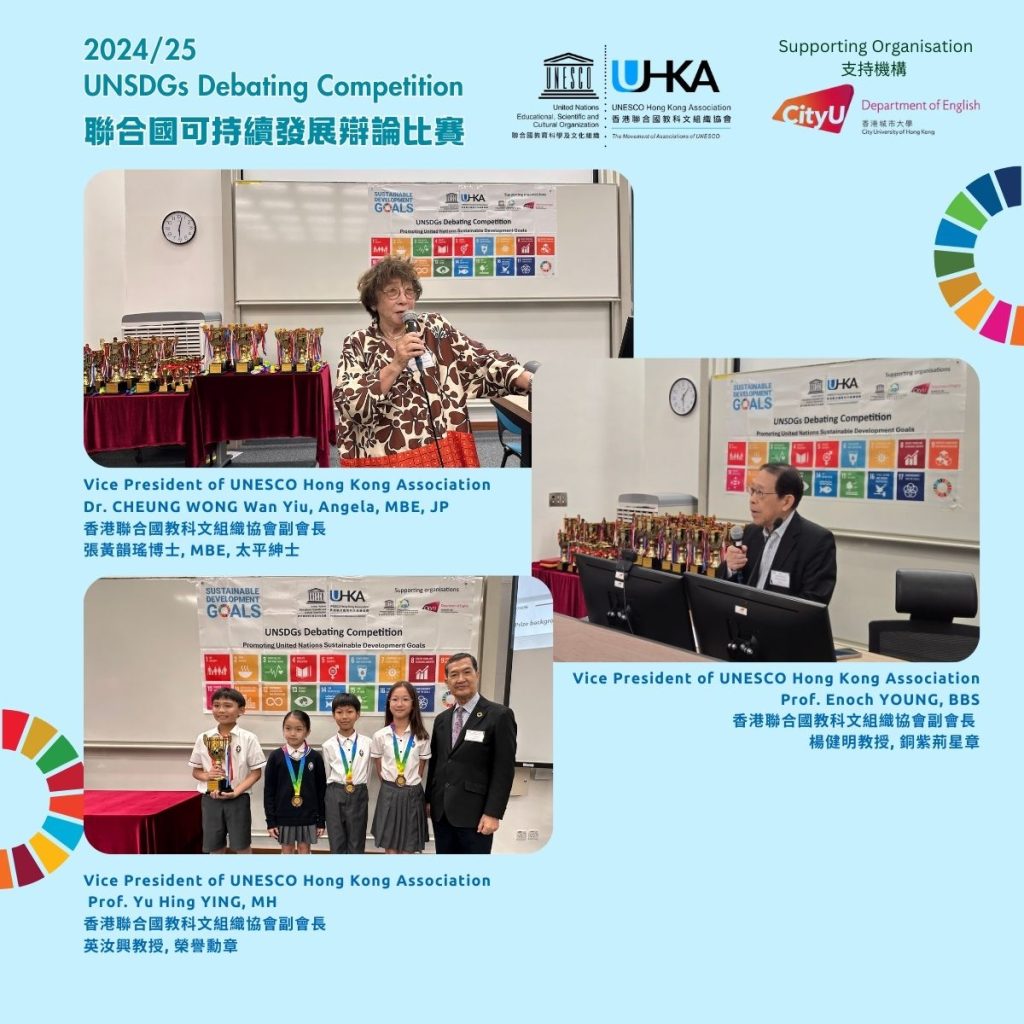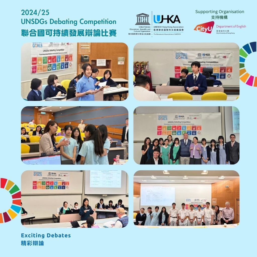The 2024-25 UNSDGs Debating Competition, hosted by the UNESCO Hong Kong Association (UHKA) and supported by the English Department of City University of Hong Kong, has successfully concluded its thrilling finals on May 19-21, 2025.