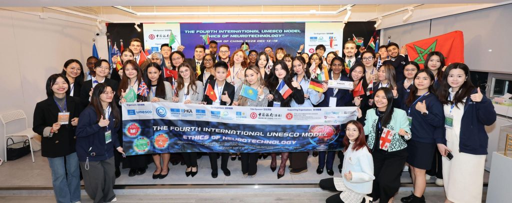 On December 13, 2025, the World Federation of Clubs and Associations for UNESCO (WFUCA) and the Hong Kong Association for UNESCO (UHKA) successfully hosted the 4th International UNESCO Model (MUNESCO) Conference in Hong Kong on the theme “Ethics of Neurotechnology, under the patronage of UNESCO and with the title sponsorship of Bank of China (Hong Kong).  Youths aged 18-25 from 25 different countries participated in the conference, creating a platform for a dynamic simulation and critical dialogue to discuss innovative proposals and solutions for this topic.